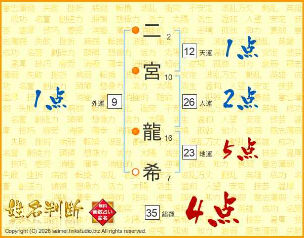 二宮龍希さんの総運は35画の4点!