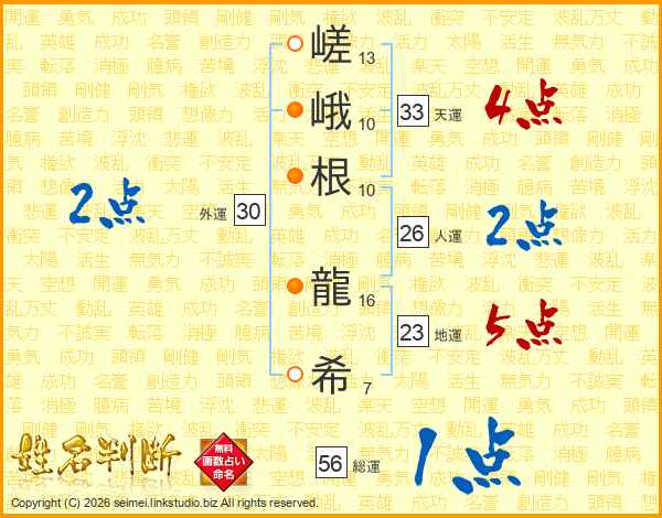 嵯峨根龍希さんの総運は56画の1点!