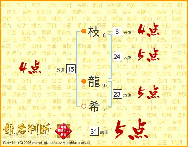 枝龍希さんの総運は31画の5点!