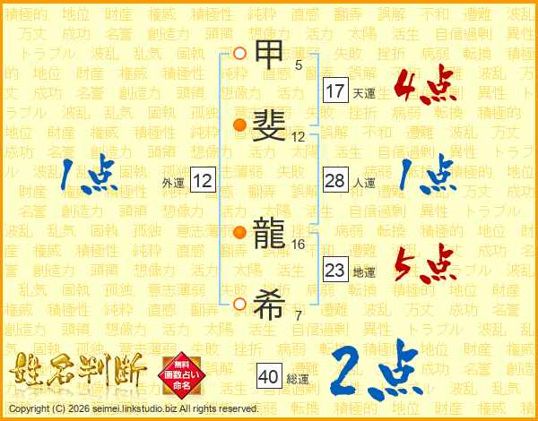 甲斐龍希さんの総運は40画の2点!
