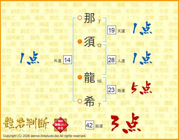 那(7画)須(12画) 龍(16画)希(7画)