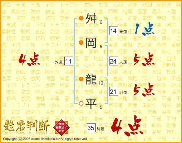舛岡龍平さんの総運は35画の4点!