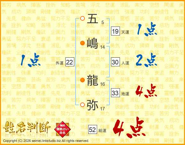 五嶋龍弥さんの総運は52画の4点!