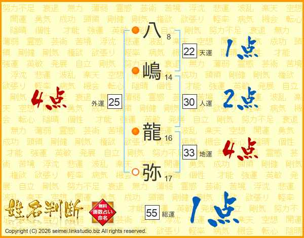 八嶋龍弥さんの総運は55画の1点!