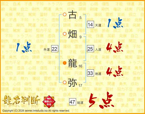古畑龍弥さんの総運は47画の5点!