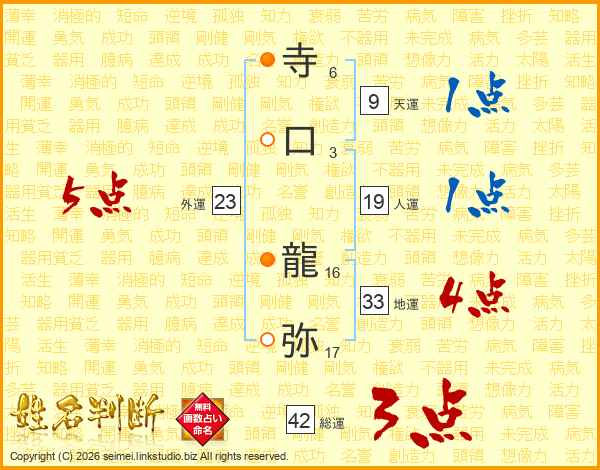 寺口龍弥さんの地運は33画の4点!
