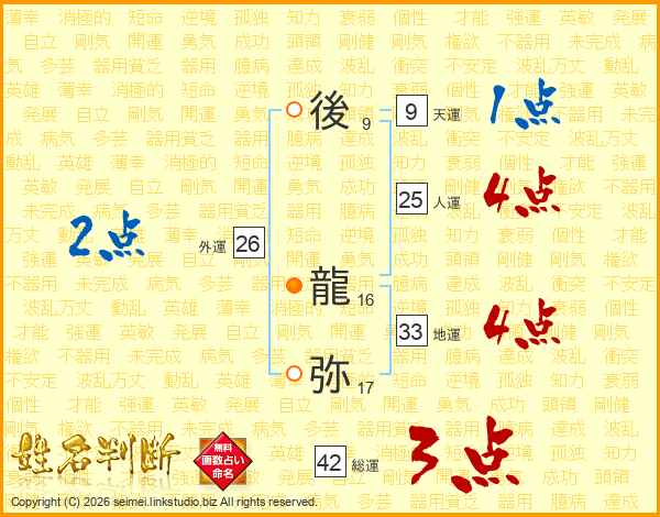 後龍弥さんの人運は25画の4点!