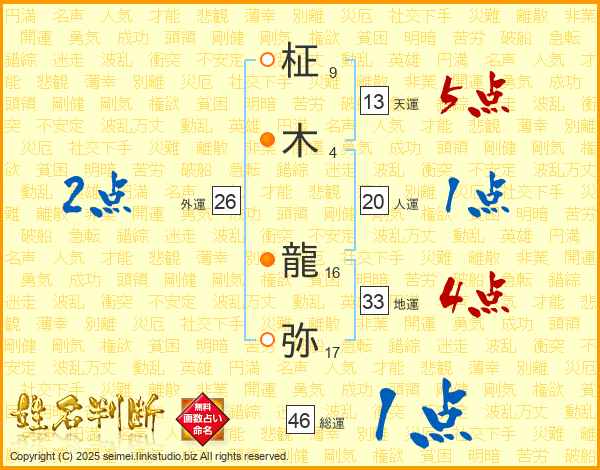 柾(9画)木(4画) 龍(16画)弥(17画)
