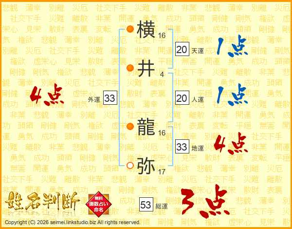 横井龍弥さんの外運は33画の4点!