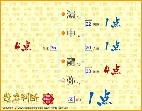 濵(18画)中(4画) 龍(16画)弥(17画)