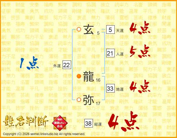 玄龍弥さんの総運は38画の4点!