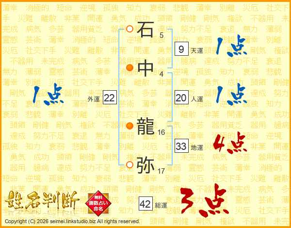 石中龍弥さんの地運は33画の4点!