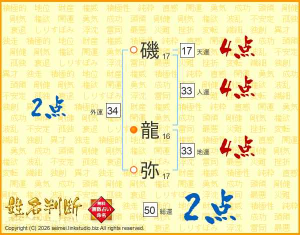 磯龍弥さんの総運は50画の2点!