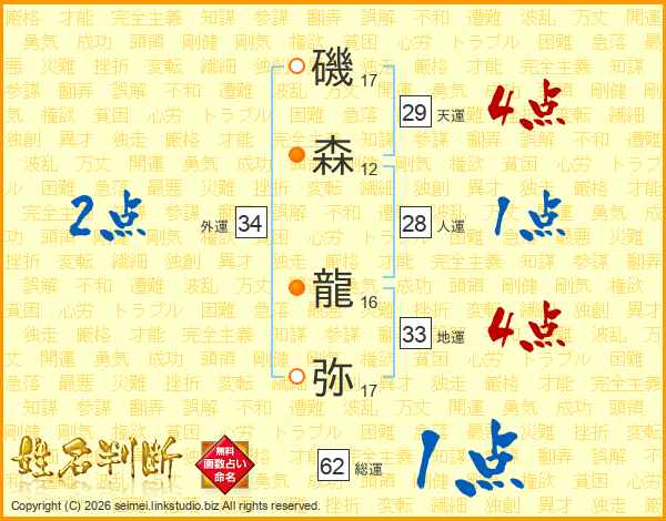磯森龍弥さんの天運は29画の4点!