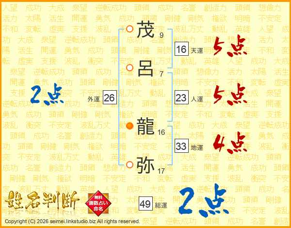 茂呂龍弥さんの総運は49画の2点!