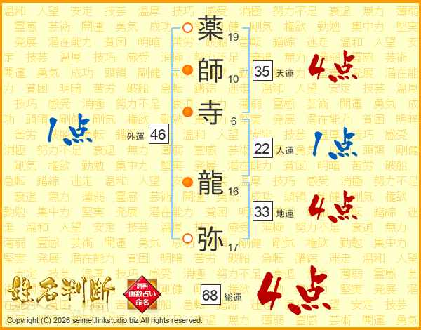 薬師寺龍弥さんの総運は68画の4点!