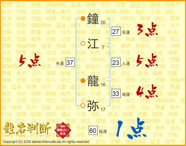 鐘(20画)江(7画) 龍(16画)弥(17画)