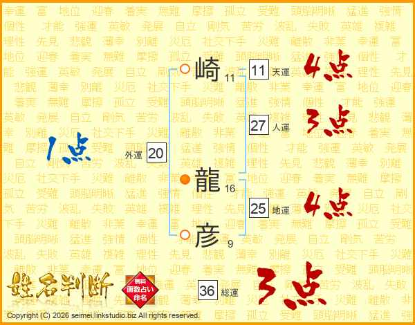 崎龍彦さんの総運は36画の3点!