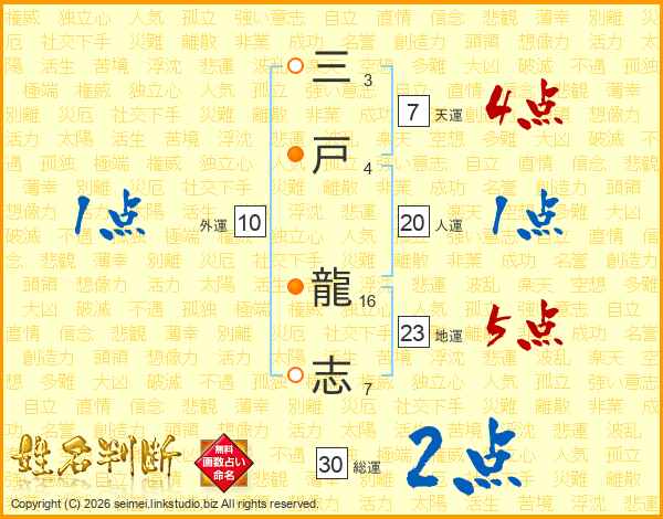 三戸龍志さんの総運は30画の2点!