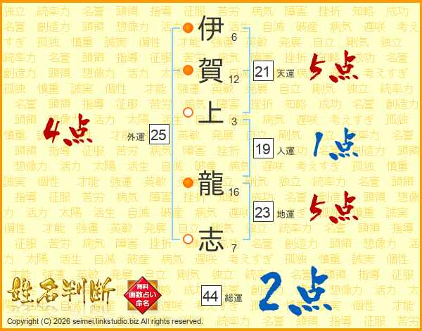 伊賀上龍志さんの総運は44画の2点!