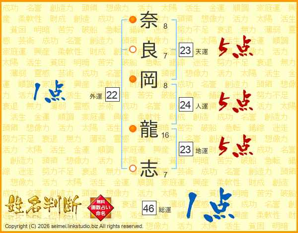 奈良岡龍志さんの総運は46画の1点!