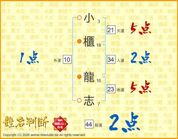 小櫃龍志さんの総運は44画の2点!