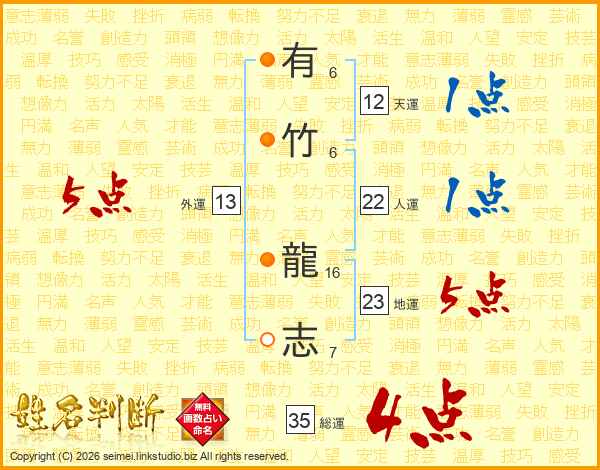 有竹龍志さんの総運は35画の4点!