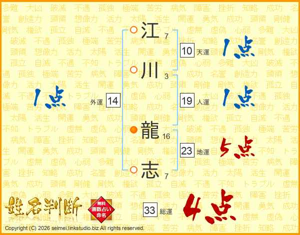 江川龍志さんの総運は33画の4点!