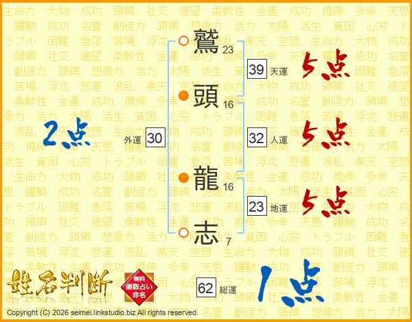 鷲頭龍志さんの天運は39画の5点!