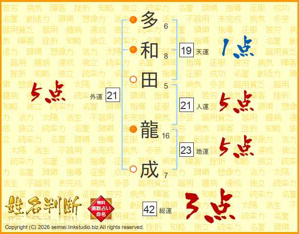 多(6画)和(8画)田(5画) 龍(16画)成(7画)
