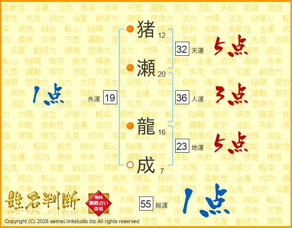 猪瀬龍成さんの天運は32画の5点!