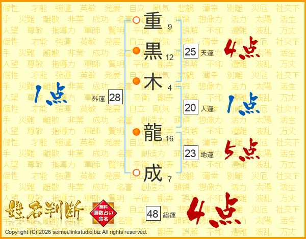 重黒木龍成さんの総運は48画の4点!