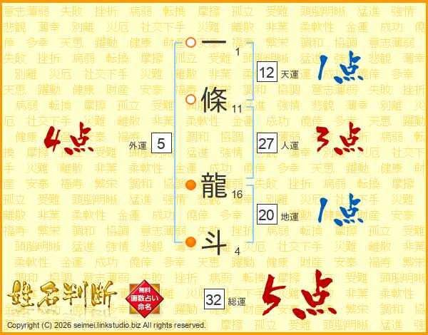 一條龍斗さんの総運は32画の5点!