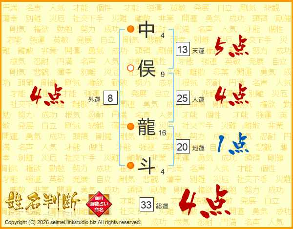 中俣龍斗さんの総運は33画の4点!