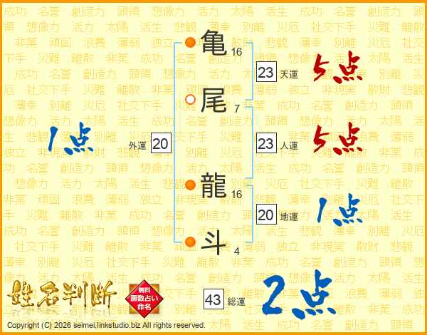 亀尾龍斗さんの天運は23画の5点!
