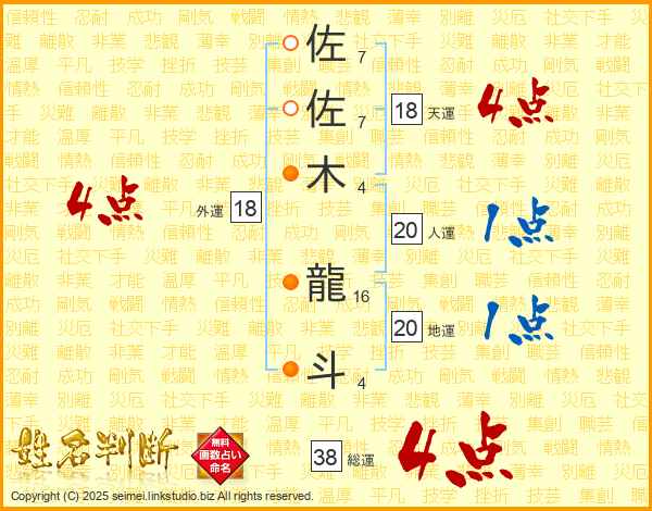 佐(7画)佐(7画)木(4画) 龍(16画)斗(4画)