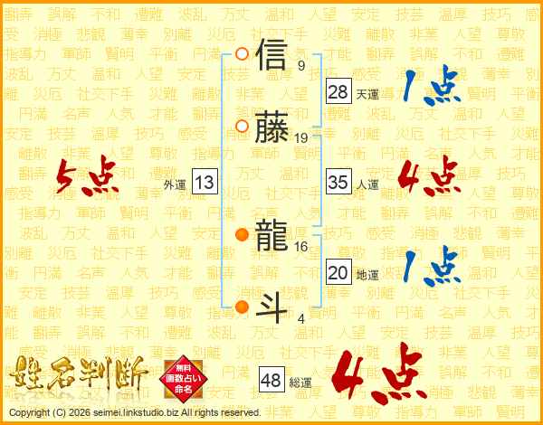 信藤龍斗さんの総運は48画の4点!
