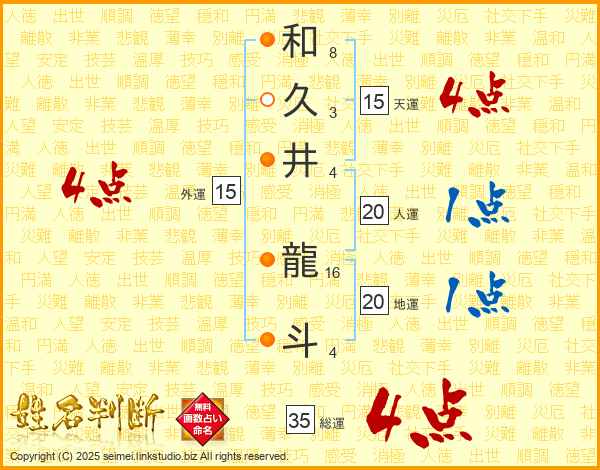 和(8画)久(3画)井(4画) 龍(16画)斗(4画)