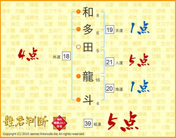 和(8画)多(6画)田(5画) 龍(16画)斗(4画)