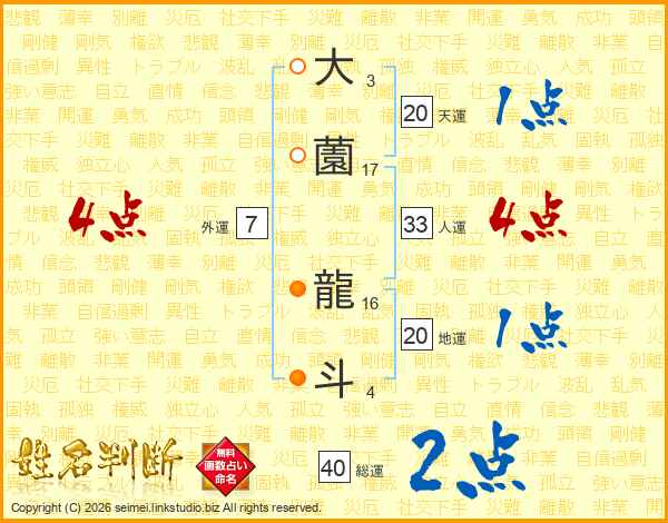 大薗龍斗さんの総運は40画の2点!