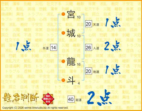 宮(10画)城(10画) 龍(16画)斗(4画)