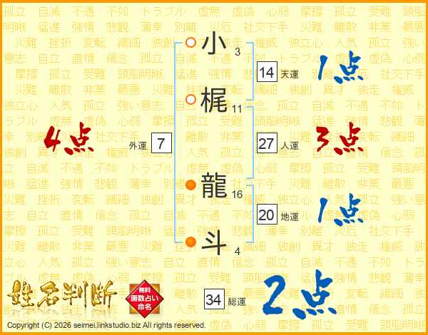 小梶龍斗さんの総運は34画の2点!