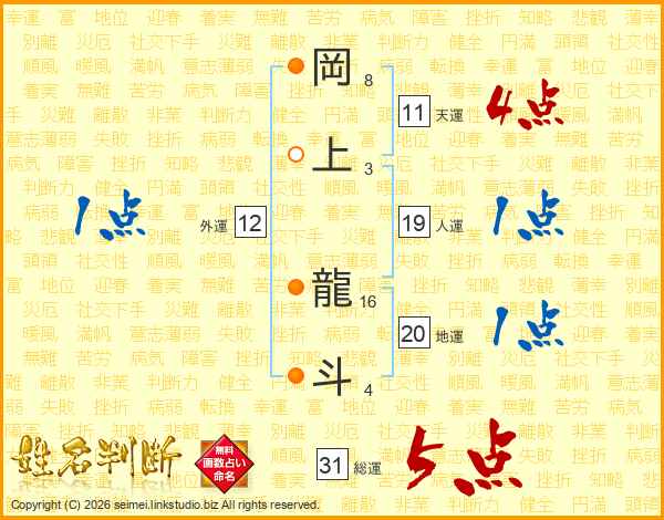 岡上龍斗さんの総運は31画の5点!