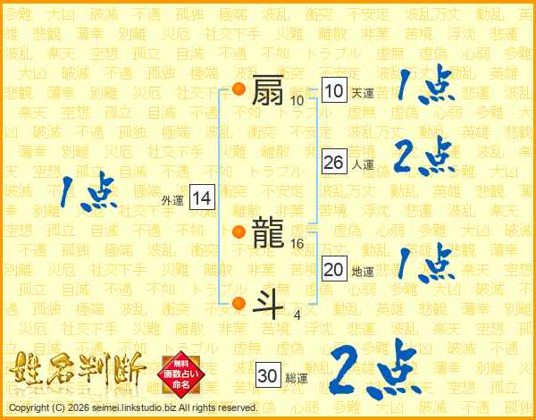 扇龍斗さんの人運は26画の2点!