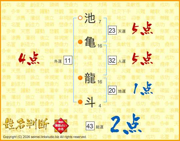 池亀龍斗さんの総運は43画の2点!