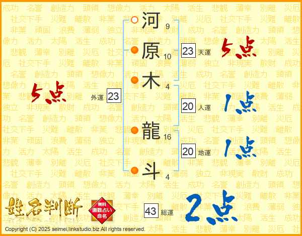河(9画)原(10画)木(4画) 龍(16画)斗(4画)