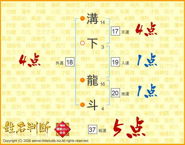 溝(14画)下(3画) 龍(16画)斗(4画)