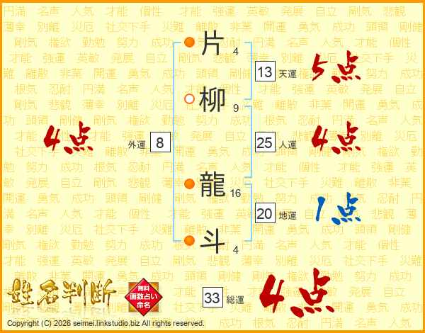 片(4画)柳(9画) 龍(16画)斗(4画)