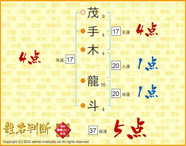 茂(9画)手(4画)木(4画) 龍(16画)斗(4画)