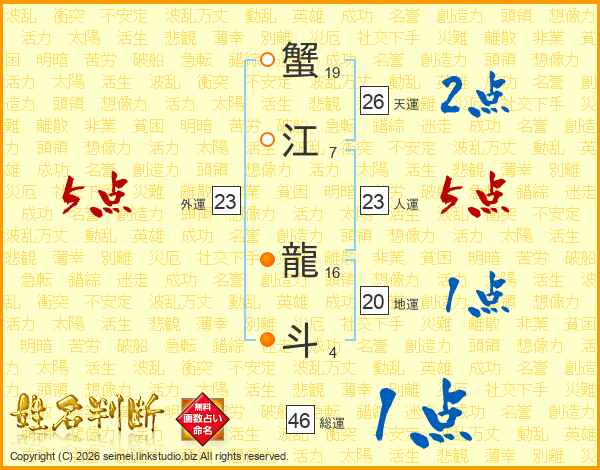 蟹(19画)江(7画) 龍(16画)斗(4画)